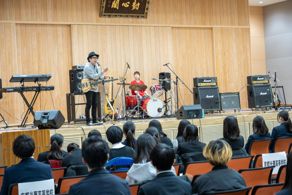 後半は各校から合計8バンド(ソロ含む)が実際に演奏し、講師の方から様々なアドバイスを受けました。プロならではの視点から鋭い指摘をいただき、実際にアドバイスを受けたバンド以外の生徒たちも、今後のバンド活動に活かせる内容が多くありました。